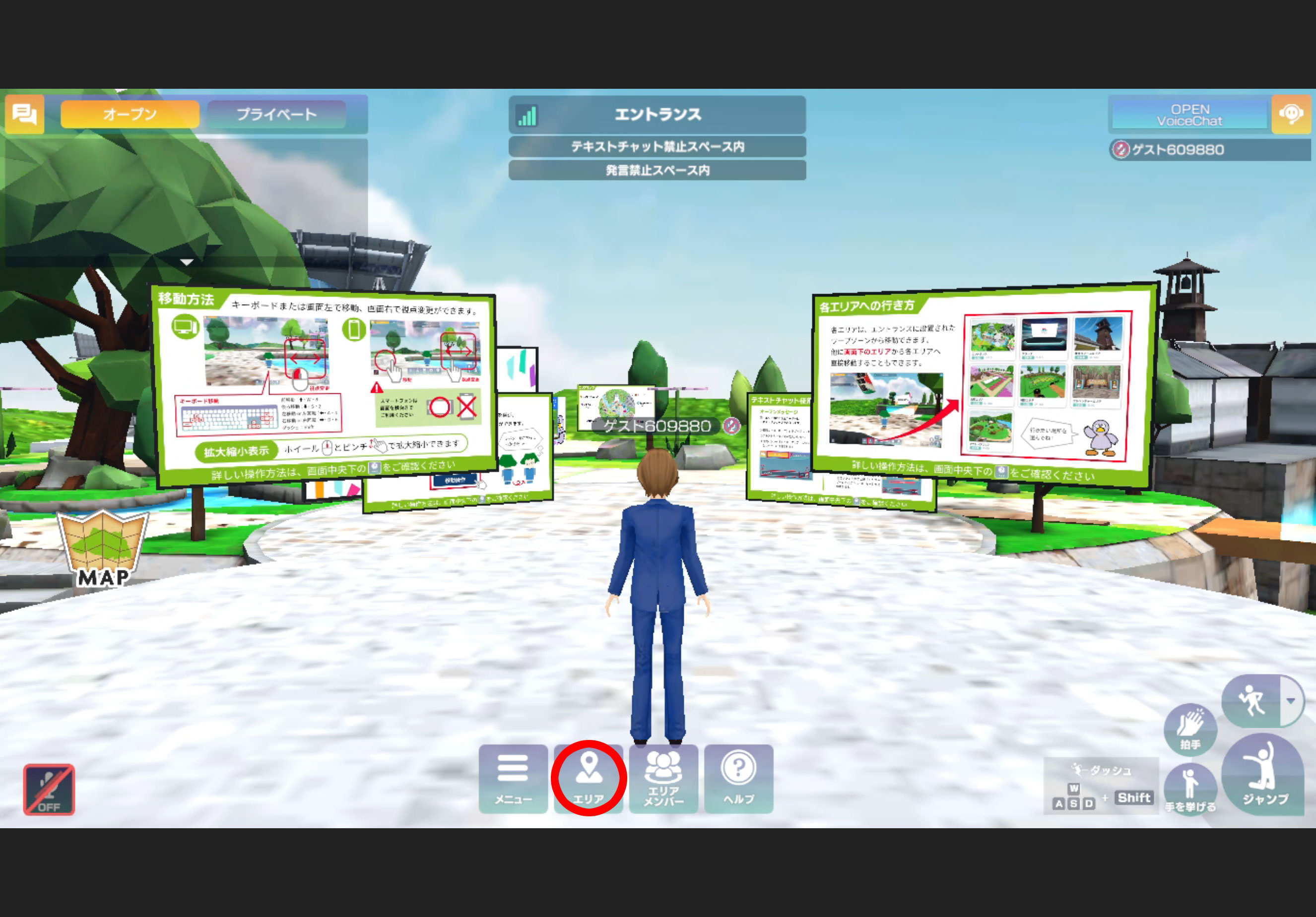 先ず、「エントランス」に入ります。下の「エリア」を選択してください。